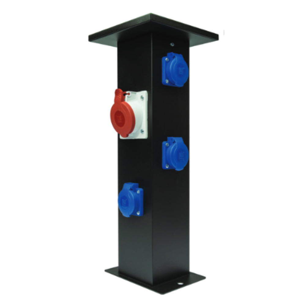 Alu Baustromverteiler Steckdosensäule (3xSchuko 250V + 1x16A/5p 400V) Außensteckdose Gartensteckdose IP44 schwarz