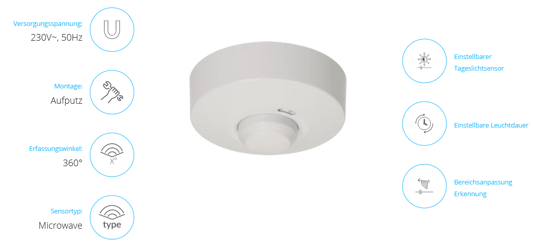 Aufputz-Mikrowllen-Bewegungsmelder 160 Grad, IP20