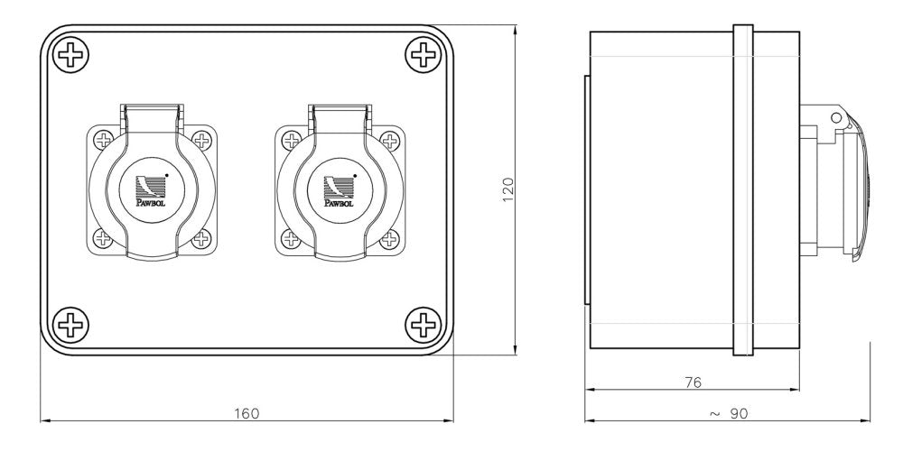 - Abmessungen -> L:155mm x B:120mm x H: ca. 100mm incl. der Schukostekdosen