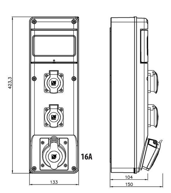 - Ausführung -> 2 x 230V 1x16A Schuko-Steckdosen