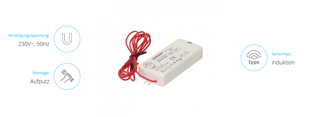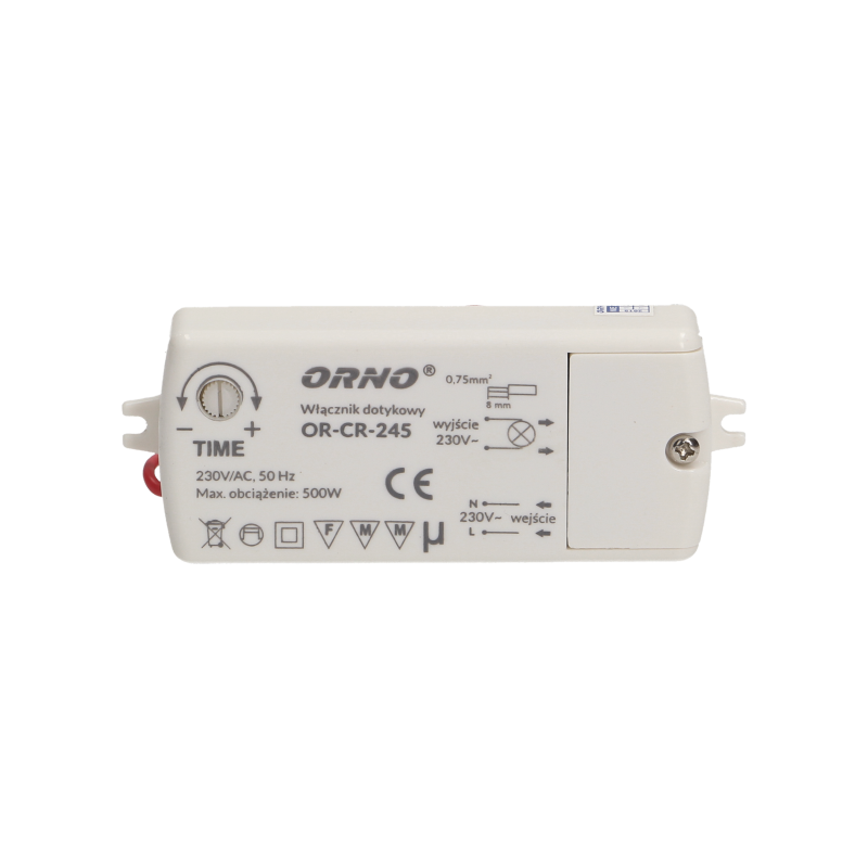 Das Gerät dient zum Ein- und Ausschalten der Glüh- und LED-Beleuchtung durch Berührung. Er ist mit einem Sensor mit einer Kabellänge von 1,5 m ausgestattet, der den Anschluss an z. B. Griffe, Lamellen und andere leitfähige Elemente ermöglicht. Das Gerät kann unter anderem in Küchenmöbeln oder Badezimmerelementen eingesetzt werden. Es arbeitet mit LED-Beleuchtung zusammen.