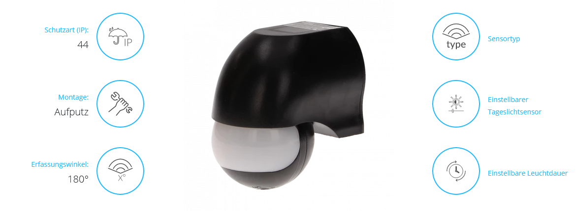 Bewegungsmelder 180 Grad IP44, 1200W, schwarz