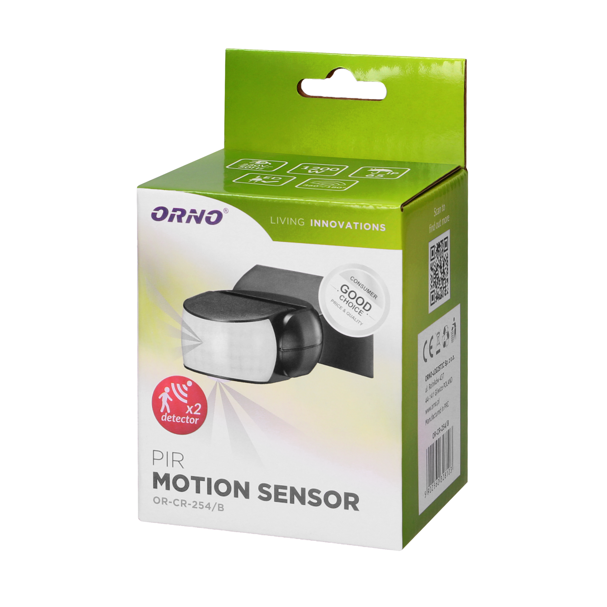 Bewegungsmelder dient zur automatischen Steuerung von Beleuchtung oder von anderen Elektrogeräten innen und außen. Zwei separate Sensoren mit einem Blickwinkel von 360 ° und 180 ° horizontal, Einstellpotentiometer: Leuchtdauer und Lichtintensitätsemfindlichkeit. Mechanische vertikale und horizontale Einstellung. Spielt mit LED-Beleuchtung zusammen