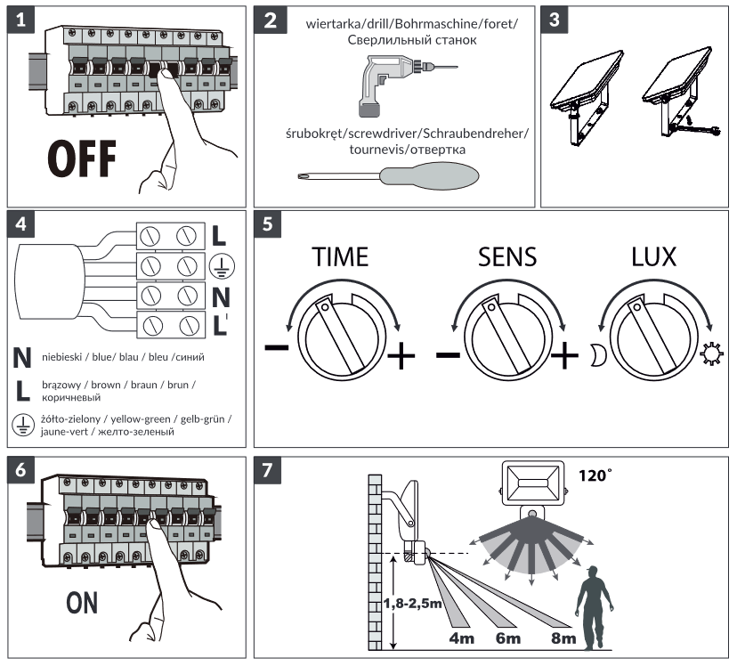 Der Fluter kann in Haushalten und sowohl im Innenbereich (Garagen, Hallen) als auch im Außenbereich (Parkplatzbeleuchtung, Gartenbeleuchtung, Grundstücksbeleuchtung, Fassaden, Werbung usw.) eingesetzt werden. Die Lichtquelle sind SMD-LEDs. Das Gerät verfügt über einen eingebauten PIR-Sensor, der das Gerät bei Bewegung einschaltet und es ermöglicht, die Beleuchtungszeit nach den eigenen Vorlieben einzustellen. Die maximale Erfassungsreichweite beträgt 8 Meter und die Leuchtdauer kann von 10+/-3 Sekunden bis 10+/-3 Minuten eingestellt werden.