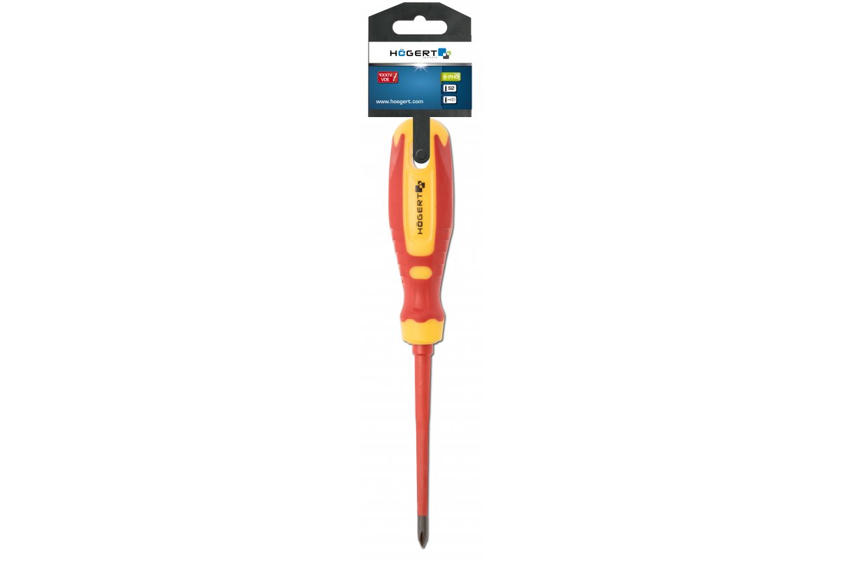 Högert Technik Kreuzschlitzschraubendreher PZ2, 100 mm, 1000 V, CrMo Stahl VDE