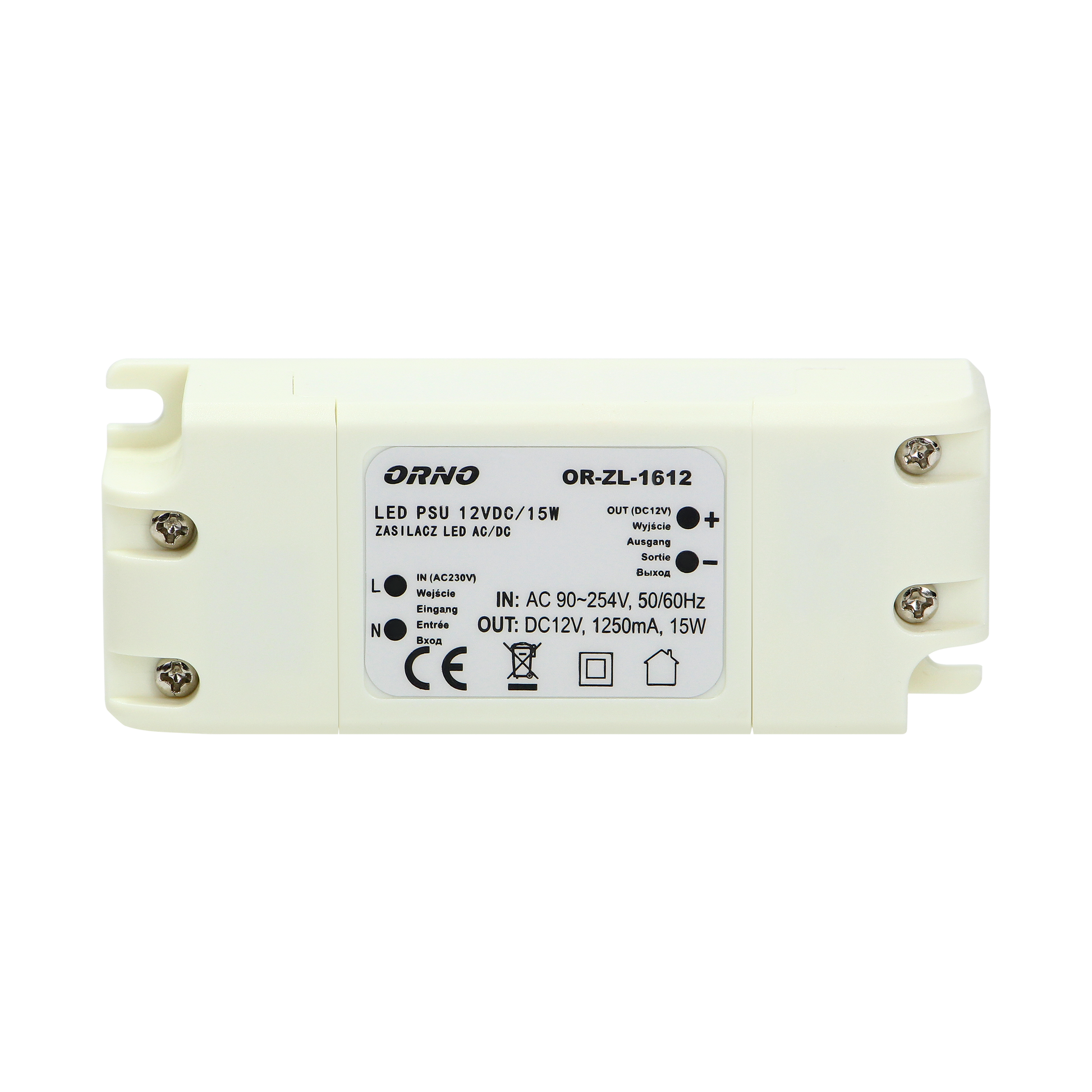Kleines Netzteil für LED-Beleuchtungssysteme, einschließlich einzelner LEDs, Streifen, LED-Streifen, Glühbirnen, Module oder Schläuche, ausgestattet mit Halterungen zur Befestigung an der Wand oder Decke. Konstante Ausgangsspannung unabhängig von der zulässigen Last, Absicherung: Sicherung 2A/250V.