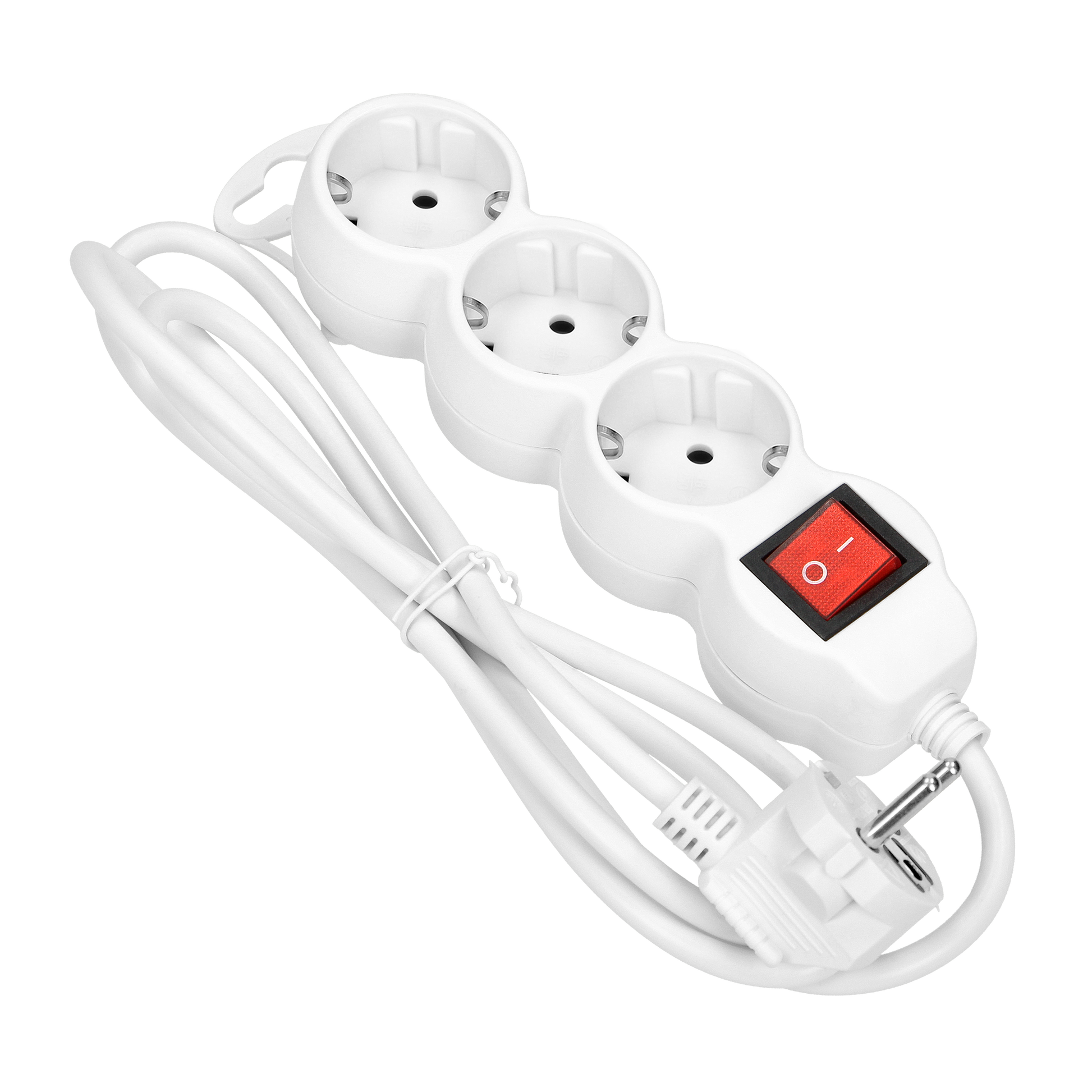 Verlängerungssteckdosen 3x 2P+E mit einem Schalter, 5m, Schuko H05VV-F 1x1,5mm2, Imax=16A, weiß