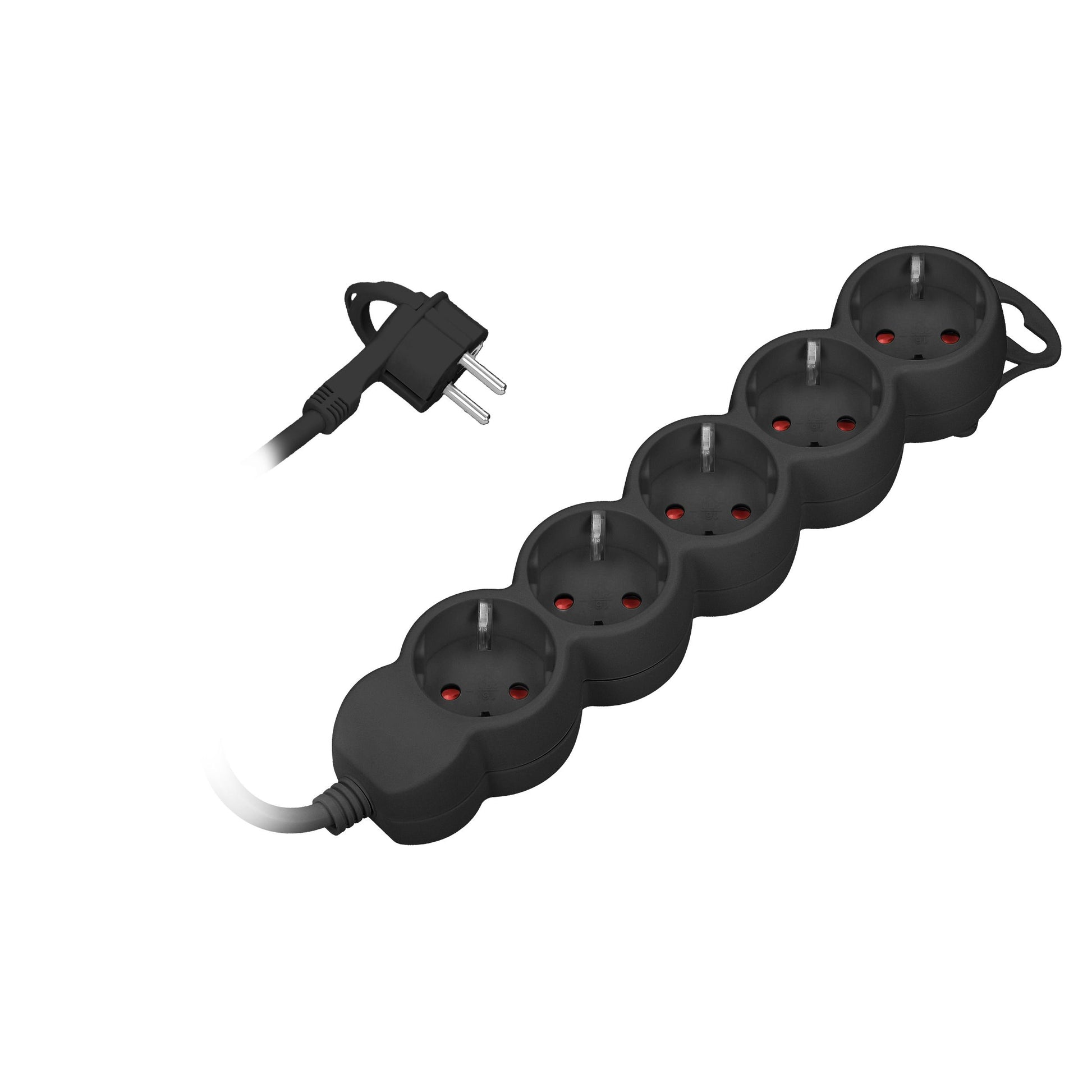 Verlängerungssteckdosen 5x 2P+E , 5m, Schuko H05VV-F 1x1,5mm2, Imax=16A, schwarz