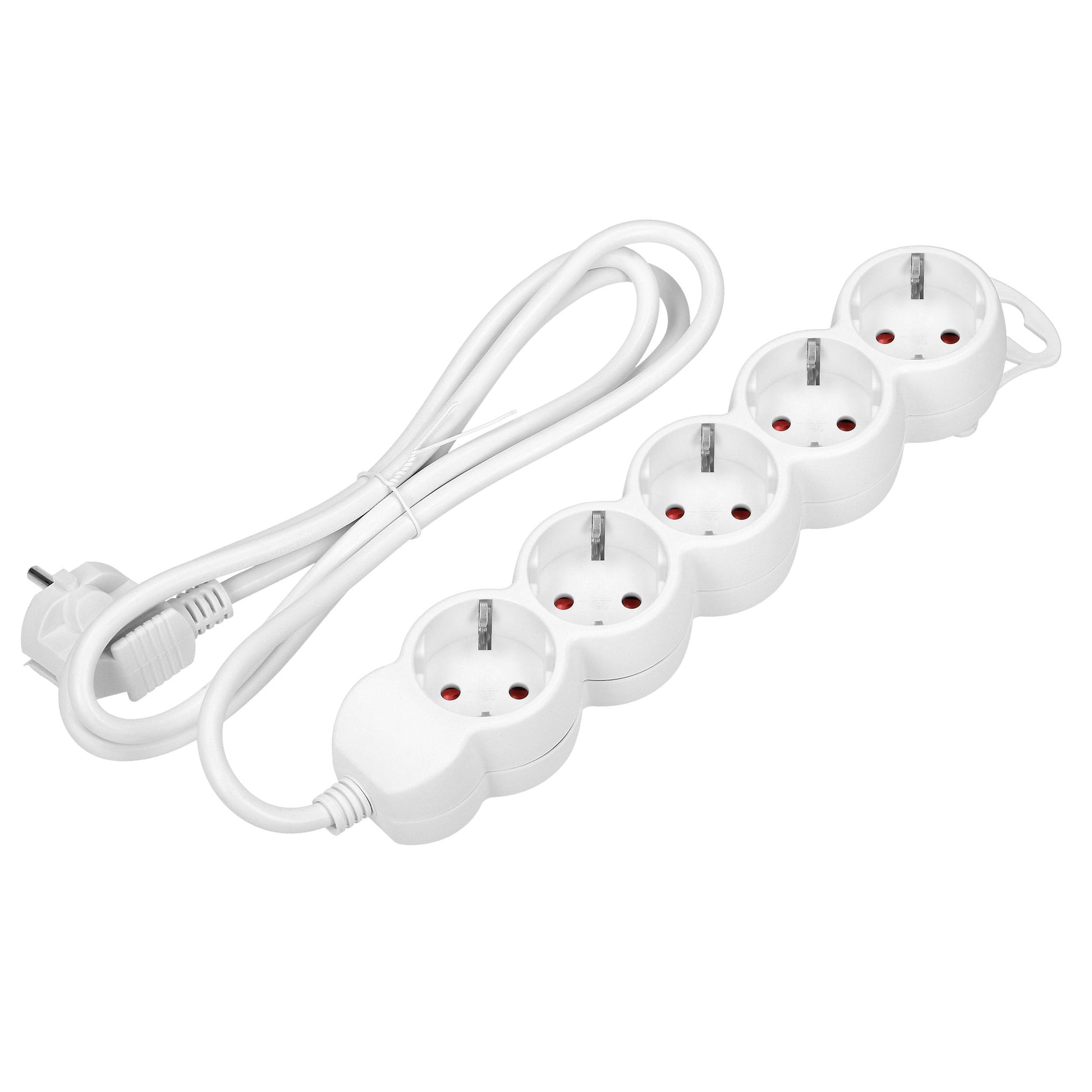 Verlängerungssteckdosen 5x 2P+E , 5m, Schuko H05VV-F 1x1,5mm2, Imax=16A, weiß