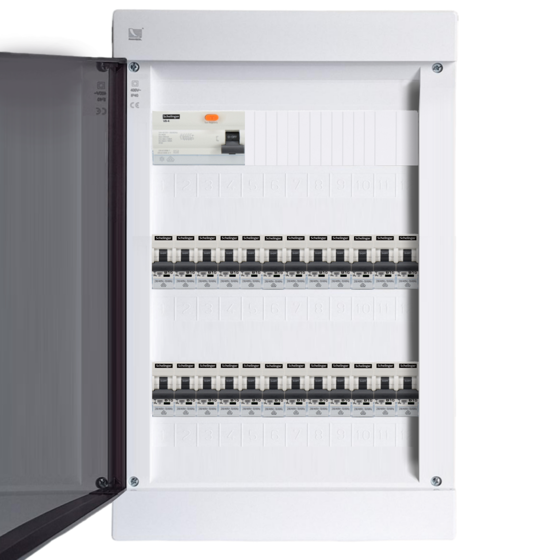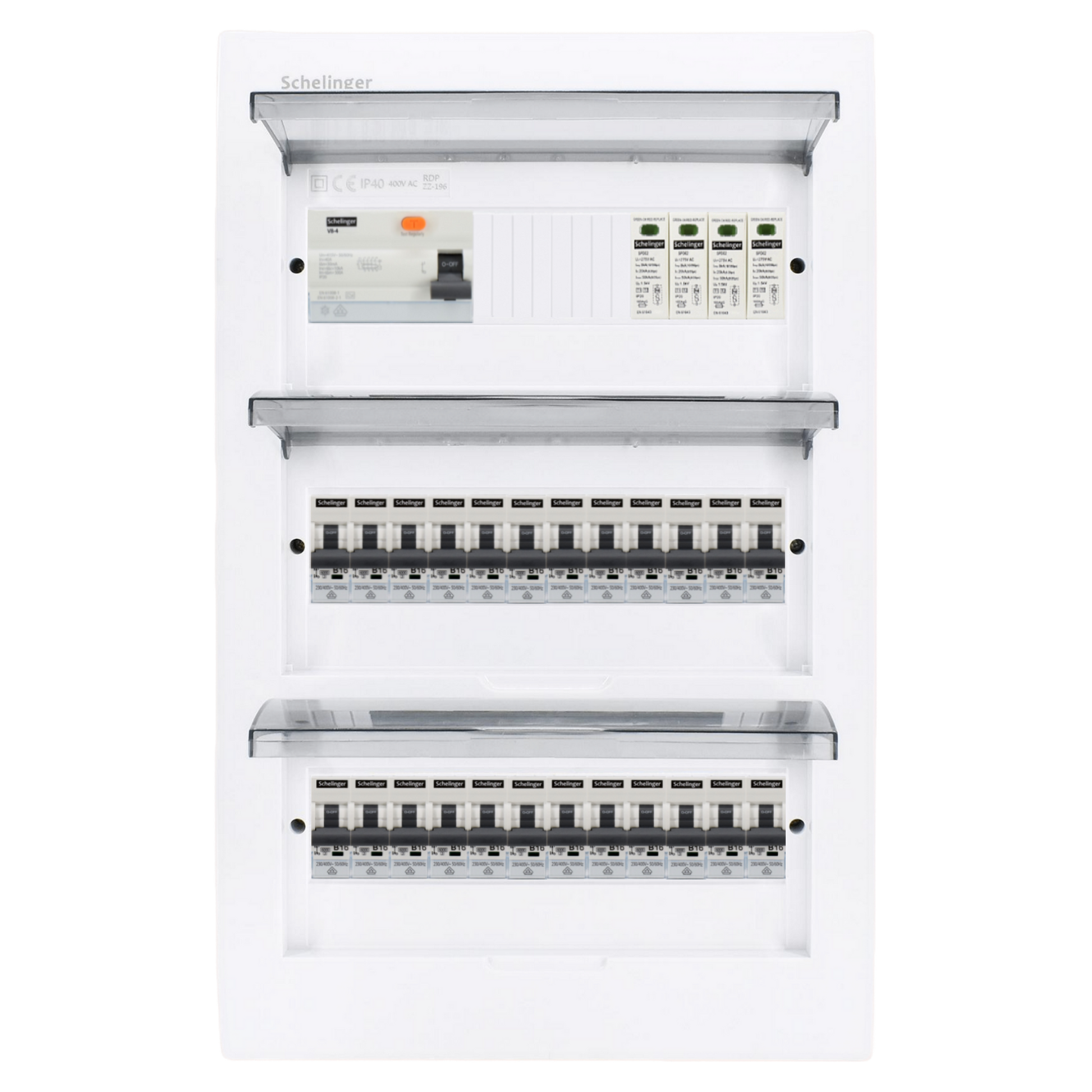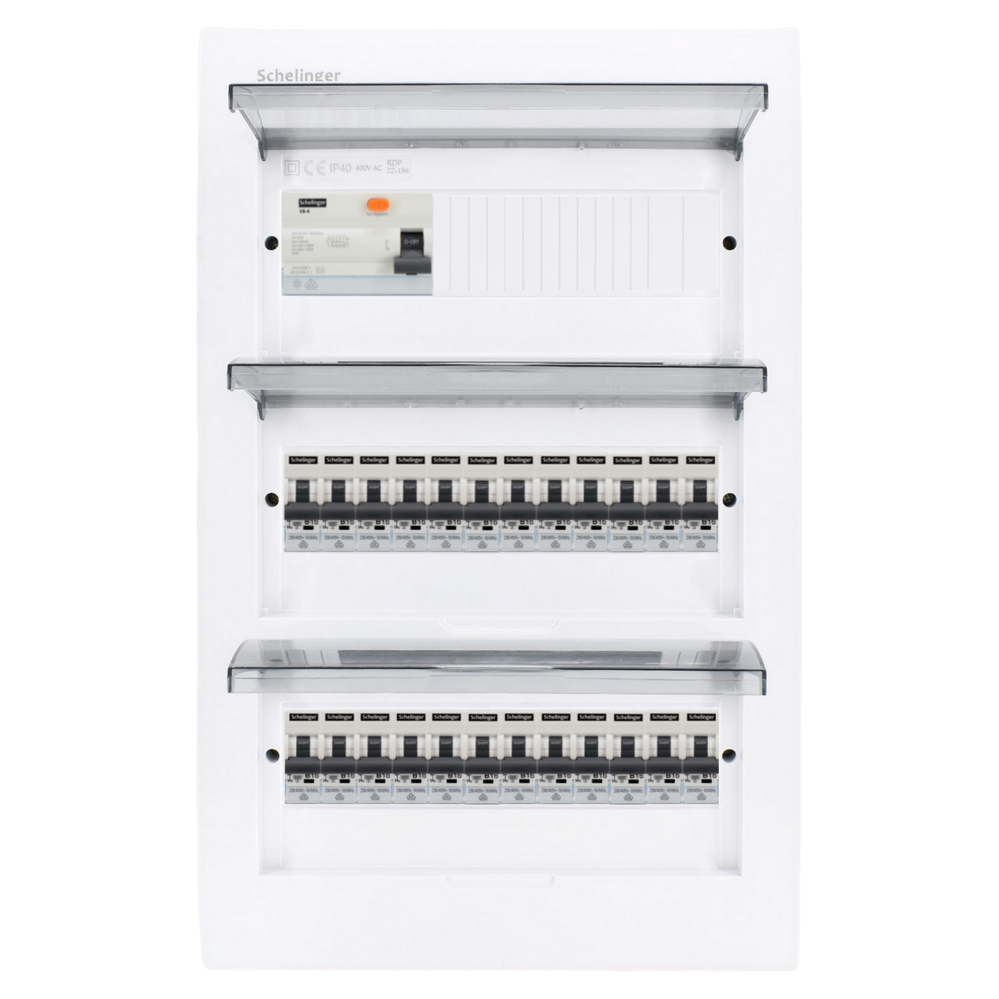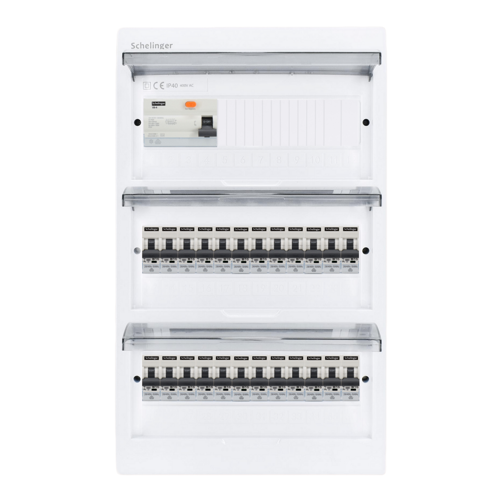 Sicherungskasten,3,4,5 Reihig, Aufputz, Unterputz, Hohlwand, verdrahtet, VDE 1 x FI 40A/30mA + 24 x 1P LS B16