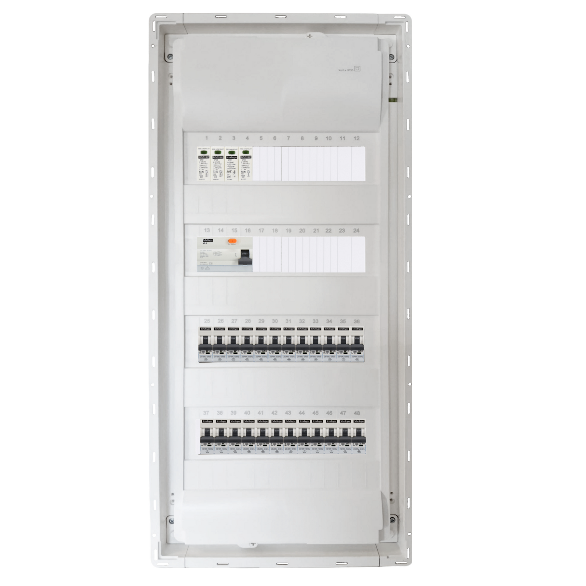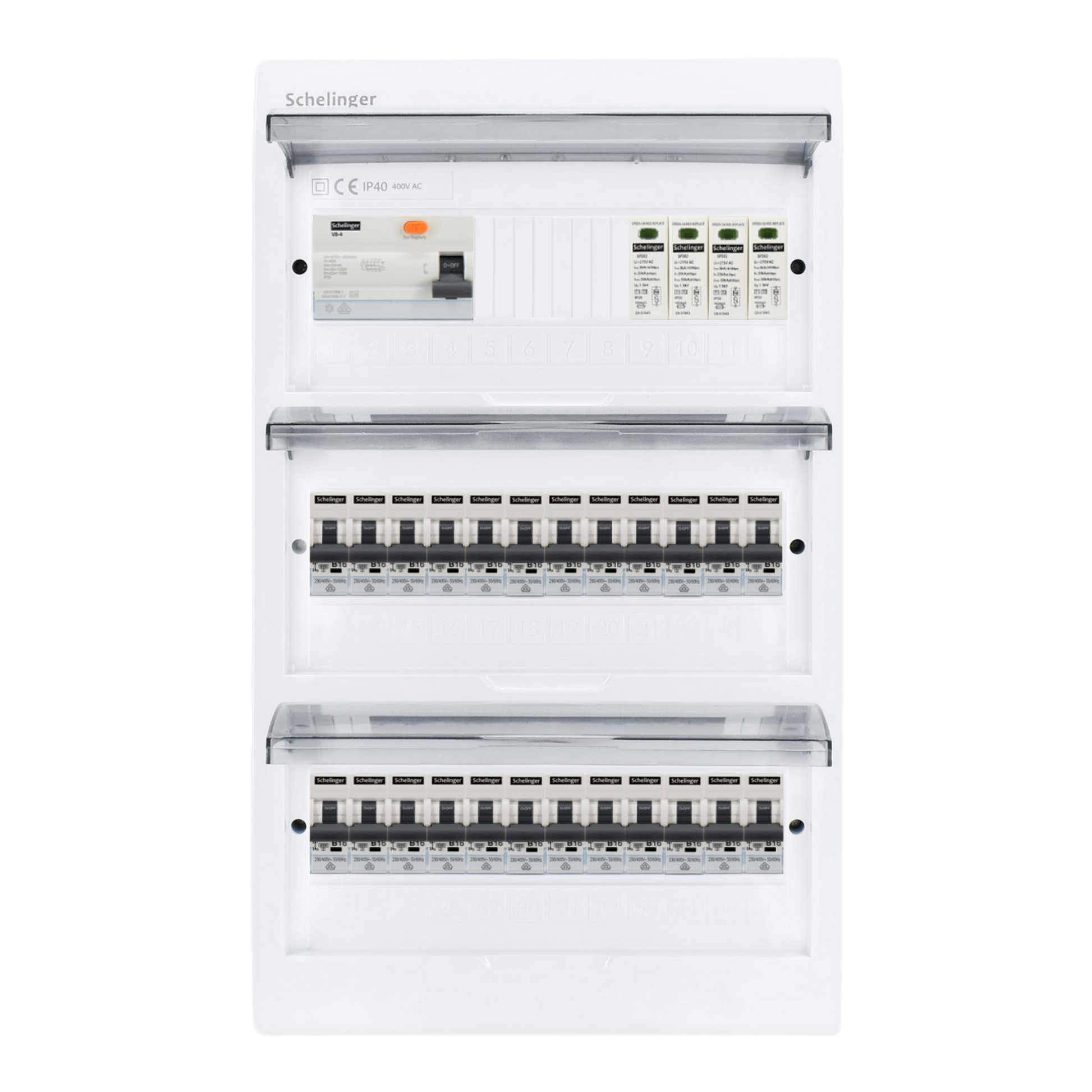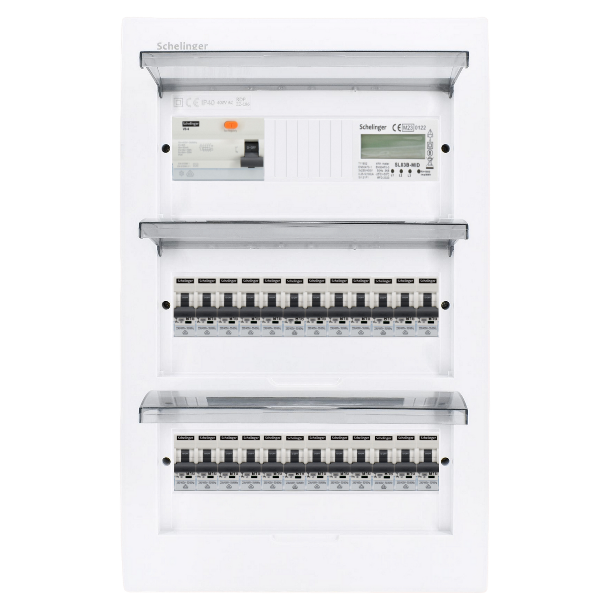 Sicherungskasten,3,4,5 Reihig, Aufputz, Unterputz, Hohlwand, verdrahtet, VDE 1 x FI 40A/30mA + 24 x 1P LS B16