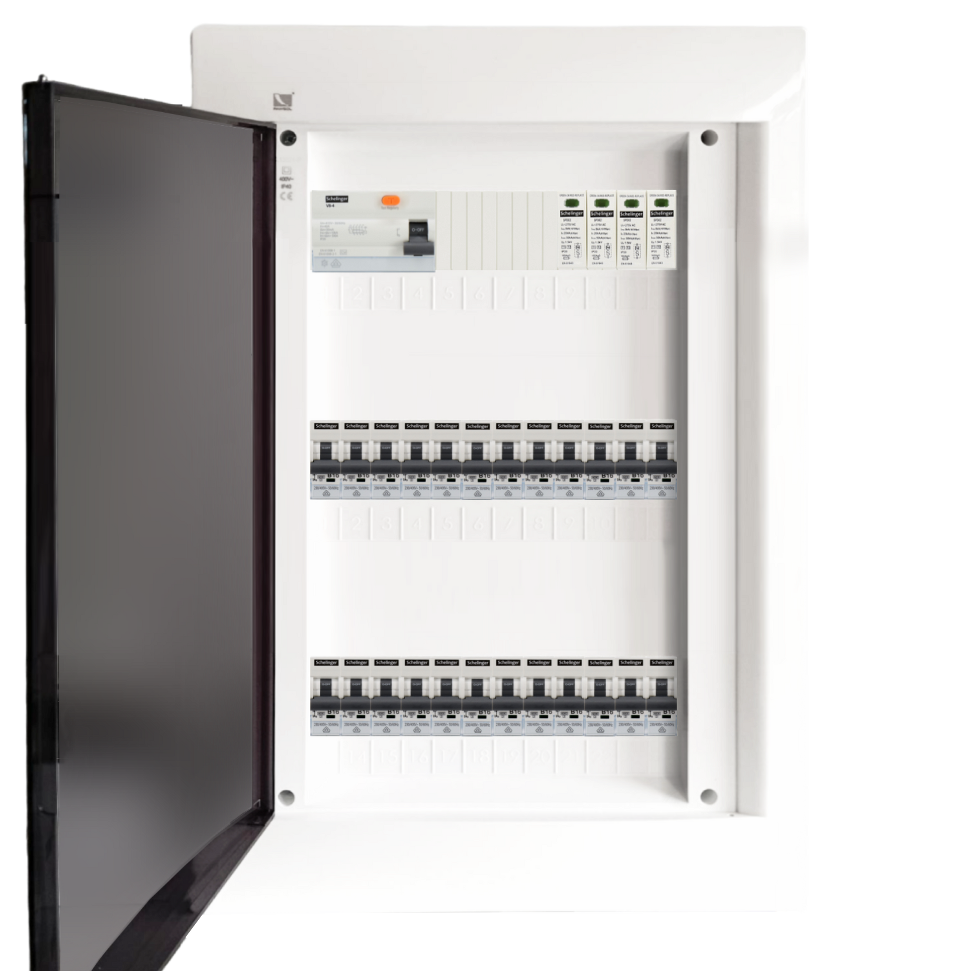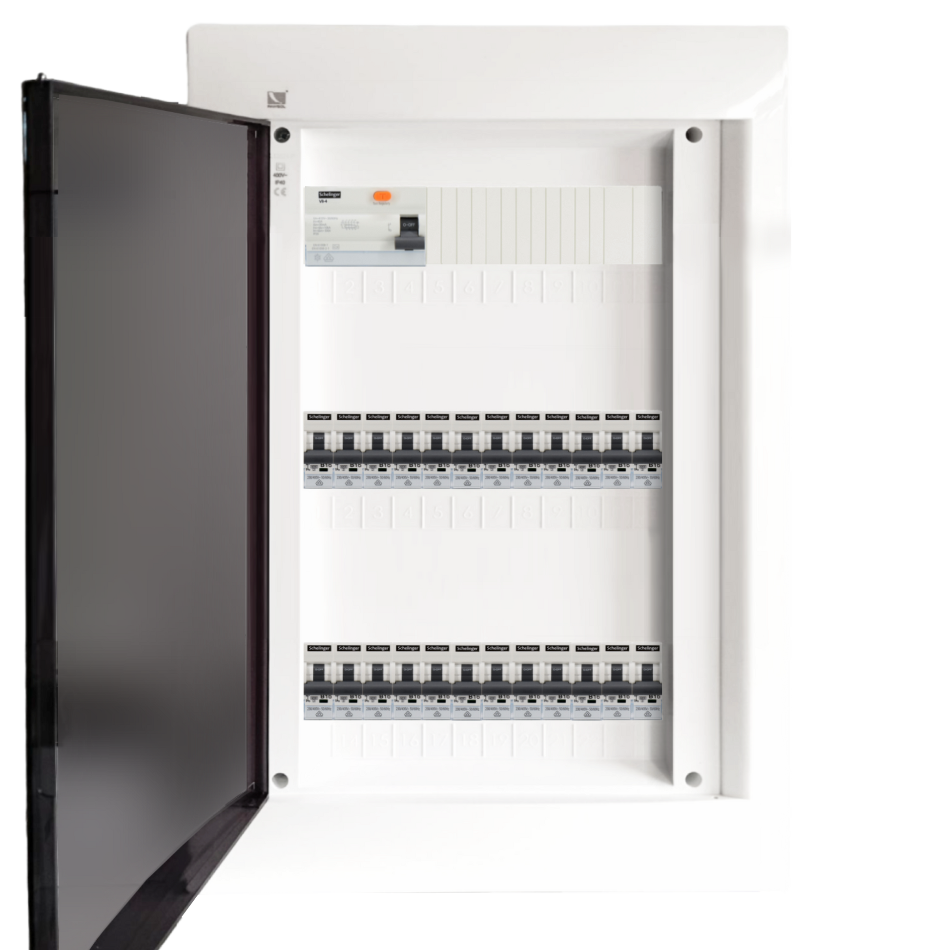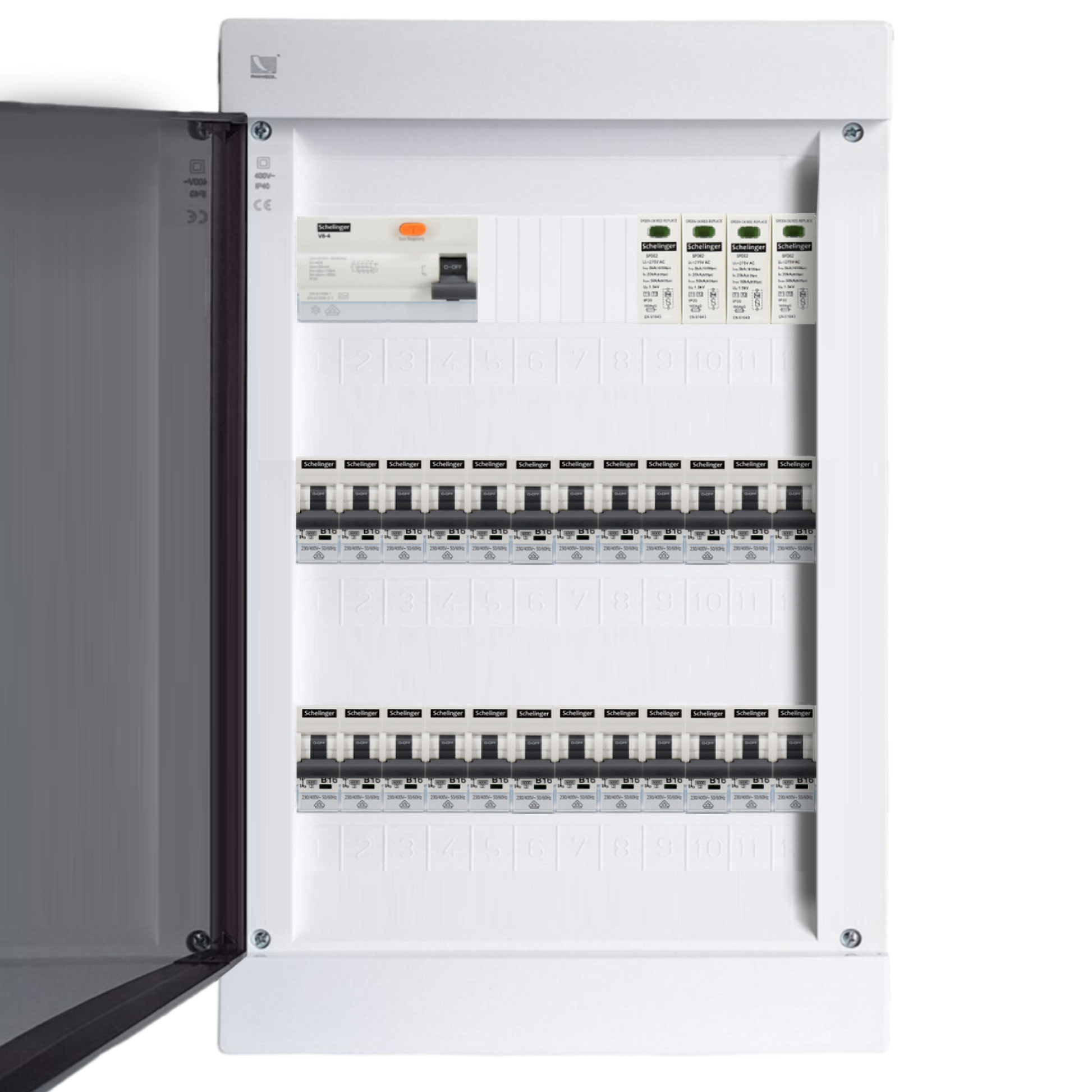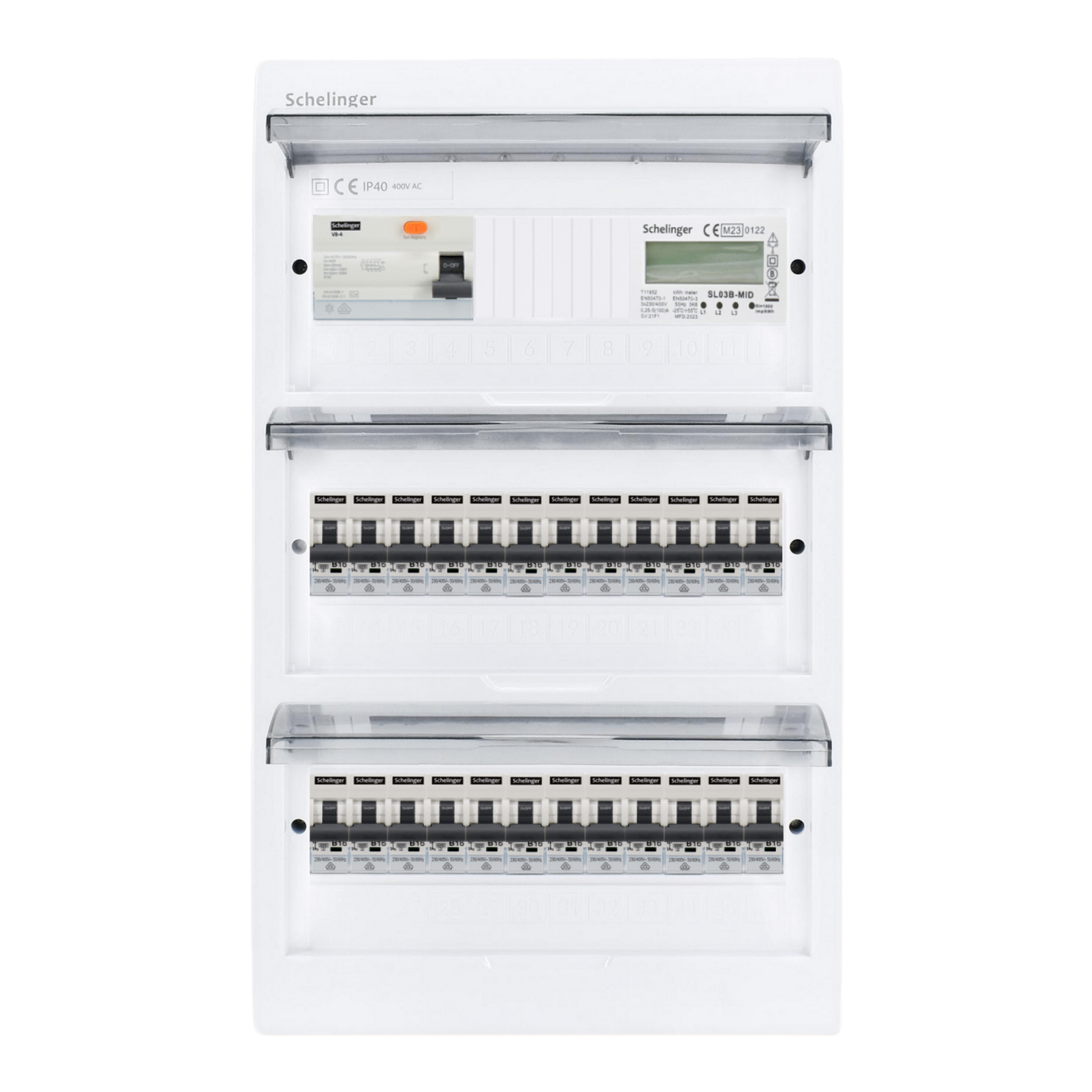 Sicherungskasten,3,4,5 Reihig, Aufputz, Unterputz, Hohlwand, verdrahtet, VDE 1 x FI 40A/30mA + 24 x 1P LS B16