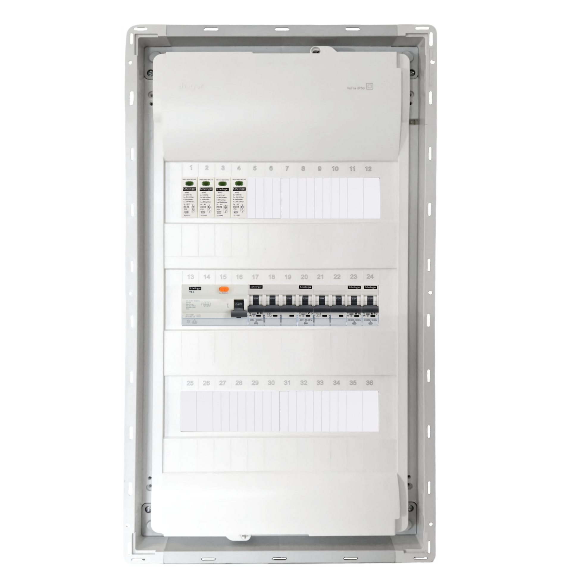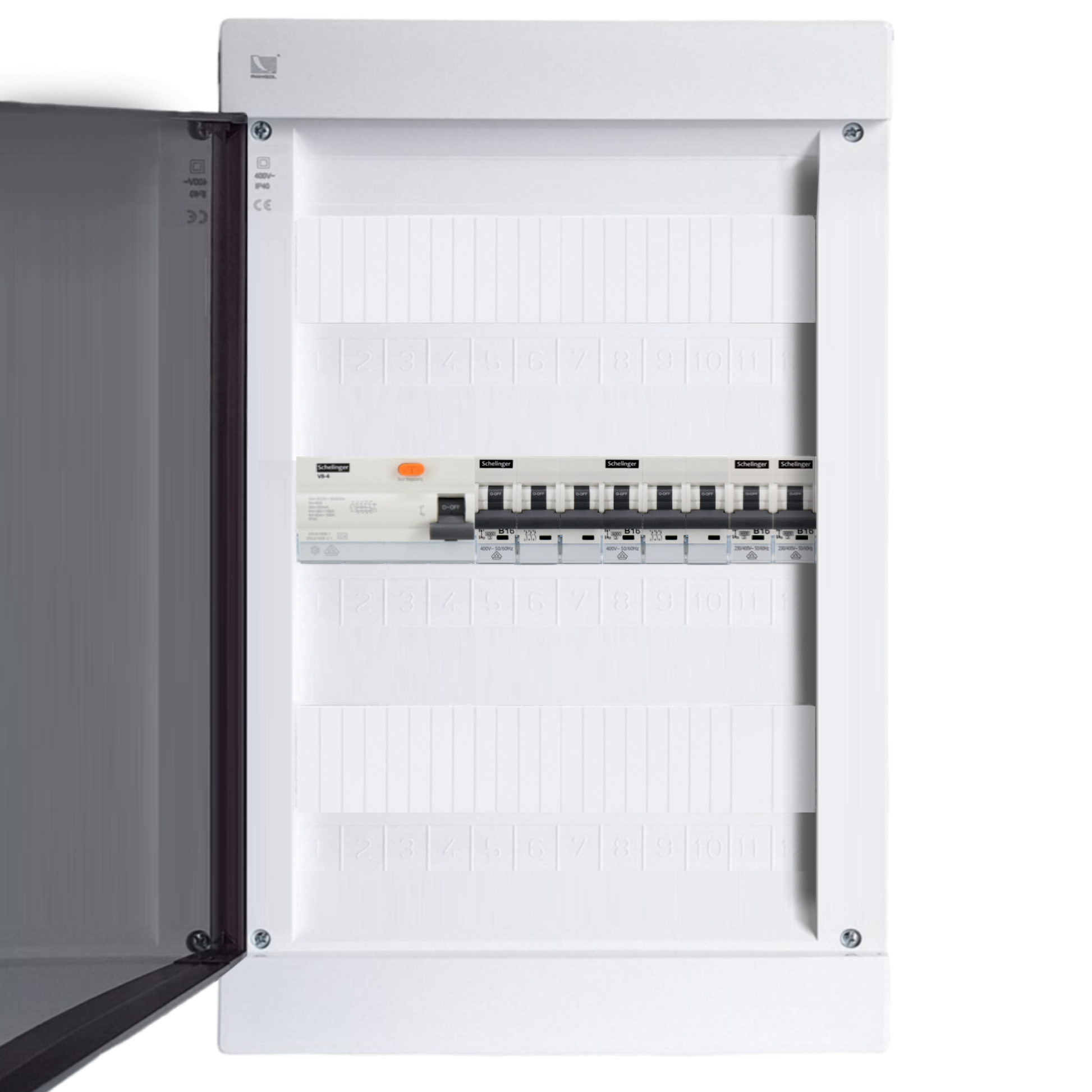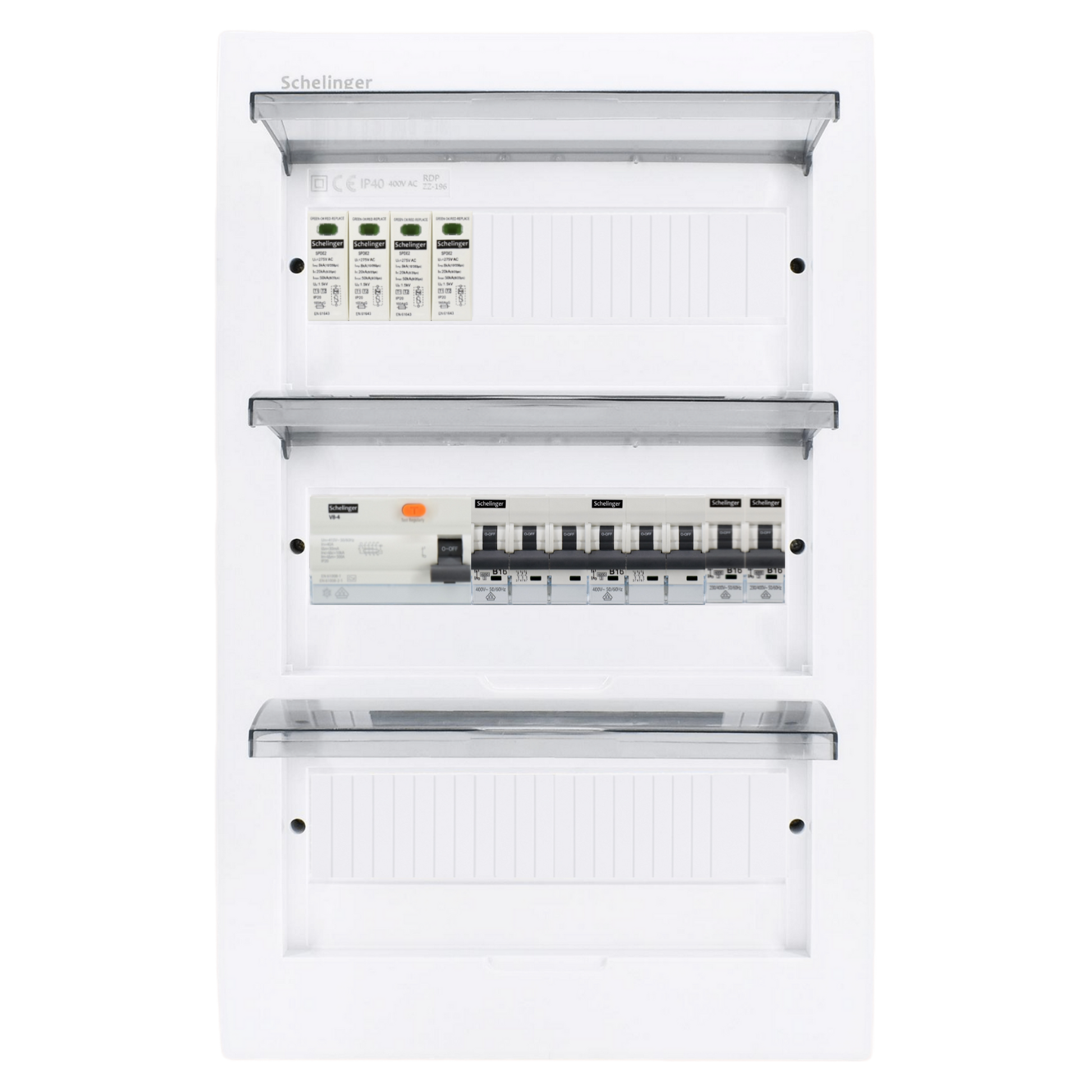 Sicherungskasten, 2,3,4,5 Reihig, Aufputz, Unterputz, Hohlwand, verdrahtet, VDE 1 x FI 40A/30mA + 2 x 3P LS B16 + 2 x 1P LS B16