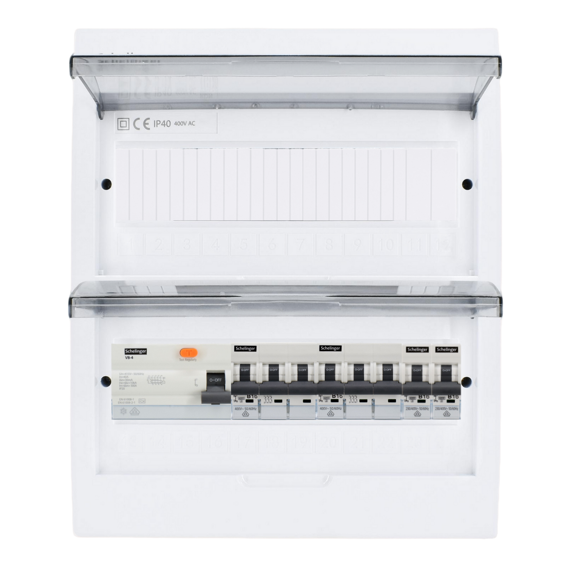 Die gewünschten Geräte sind komplett anschlussfertig mit 10 mm² Kabel vorverdrahtet. Sie müssen nur noch den Verteiler installieren, die Eingangskabel an die Automaten anschließen und das Hauptanschlusskabel mit der Klemmleiste verbinden. Jeder Verteiler wird mit einer Klemmleiste geliefert, um den Anschluss noch einfacher zu machen.