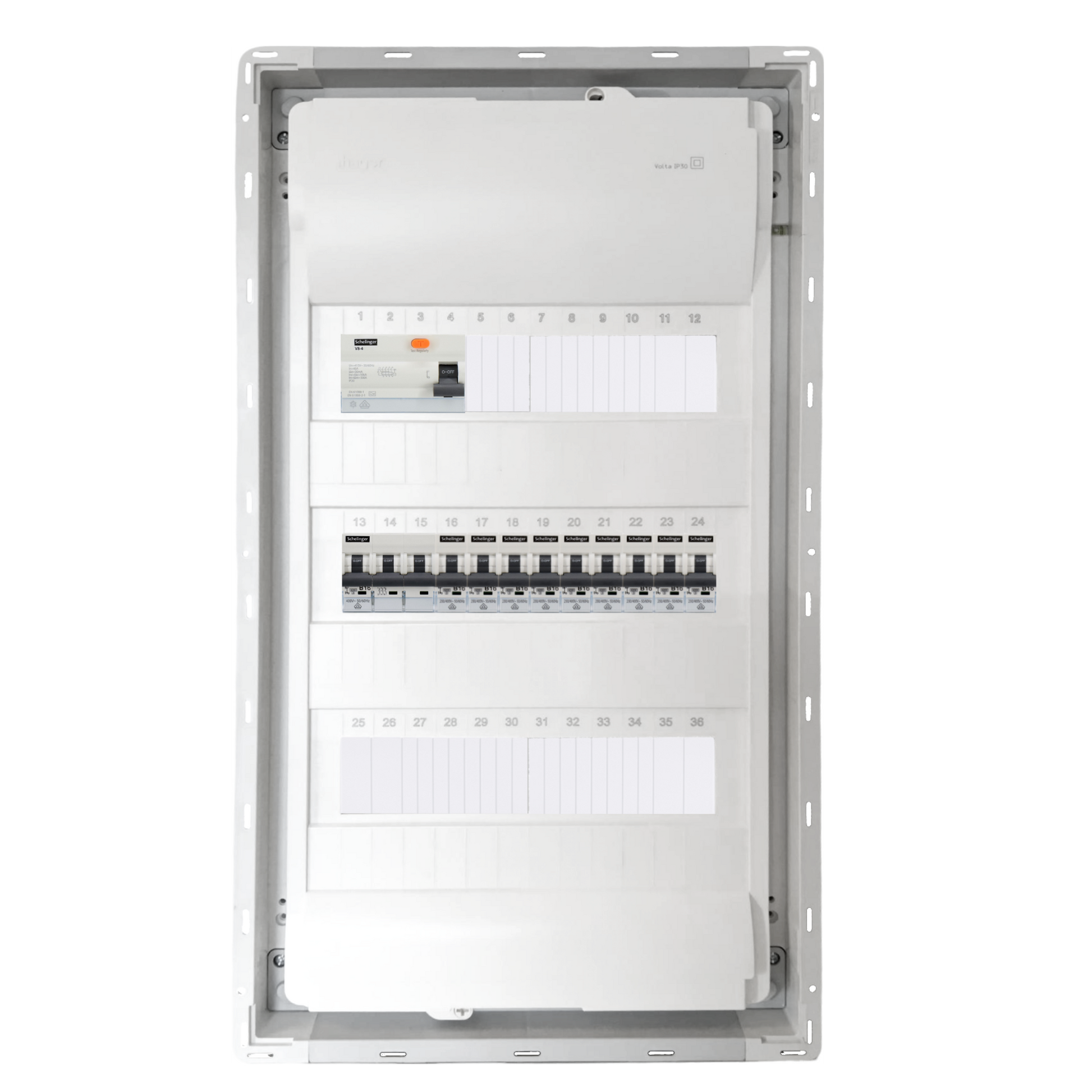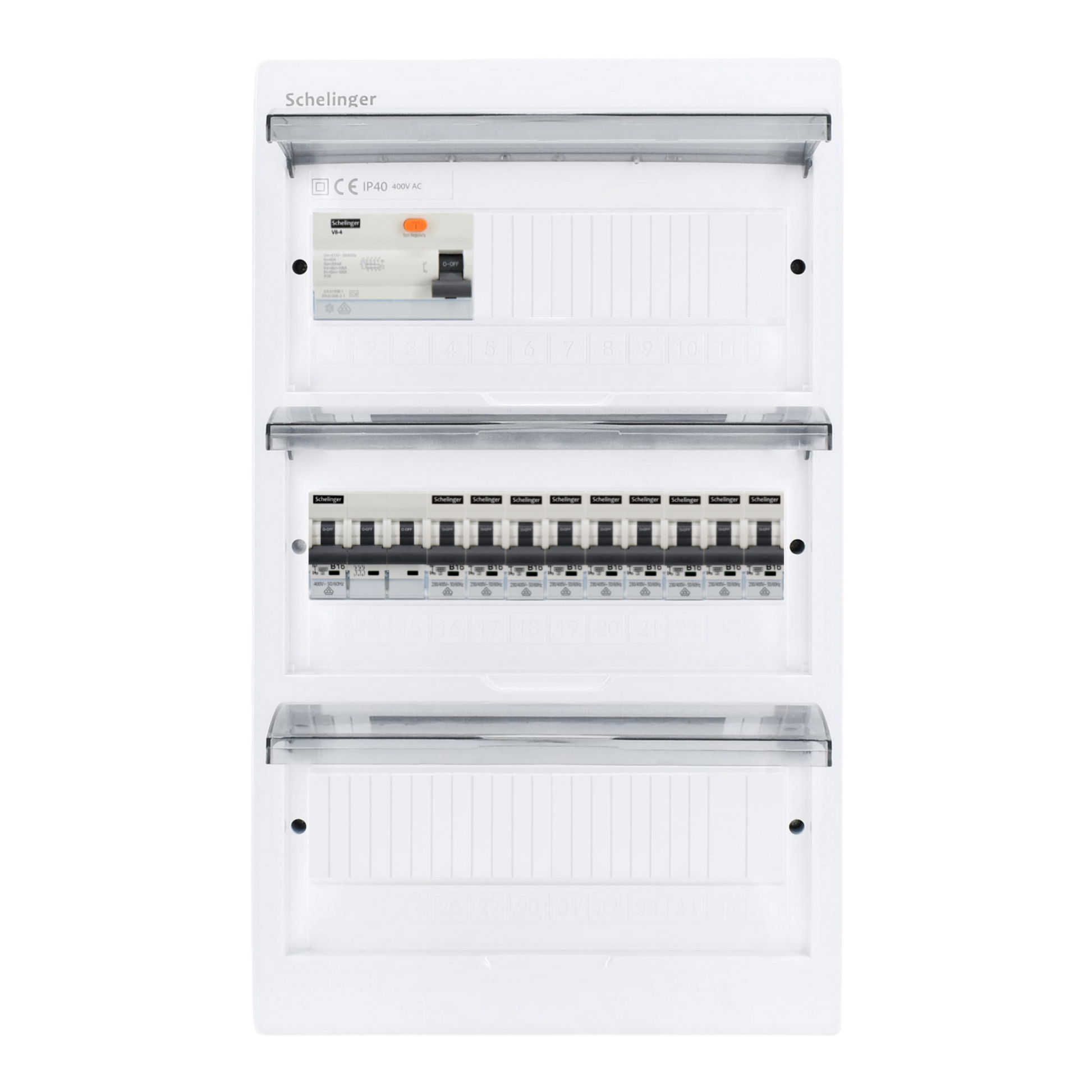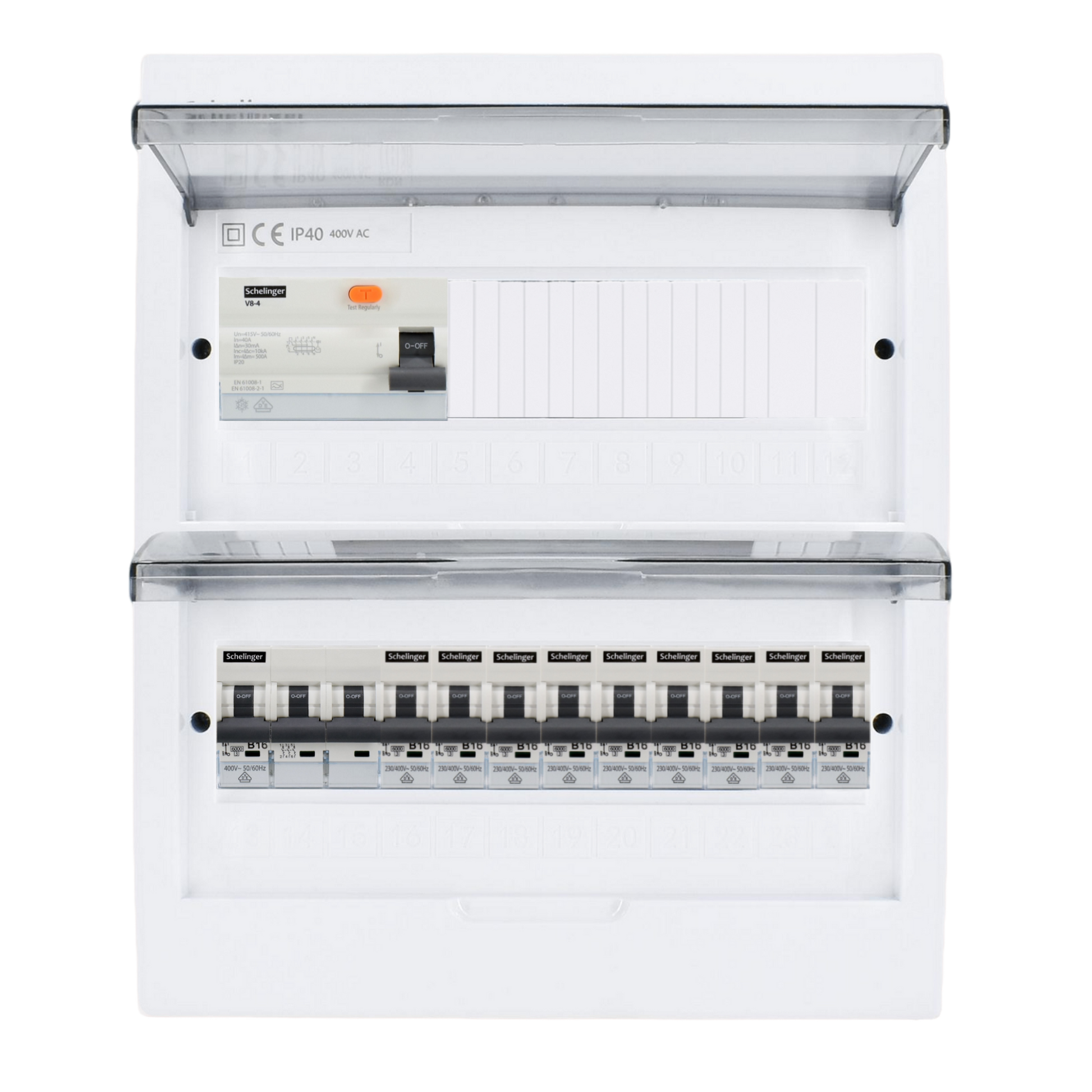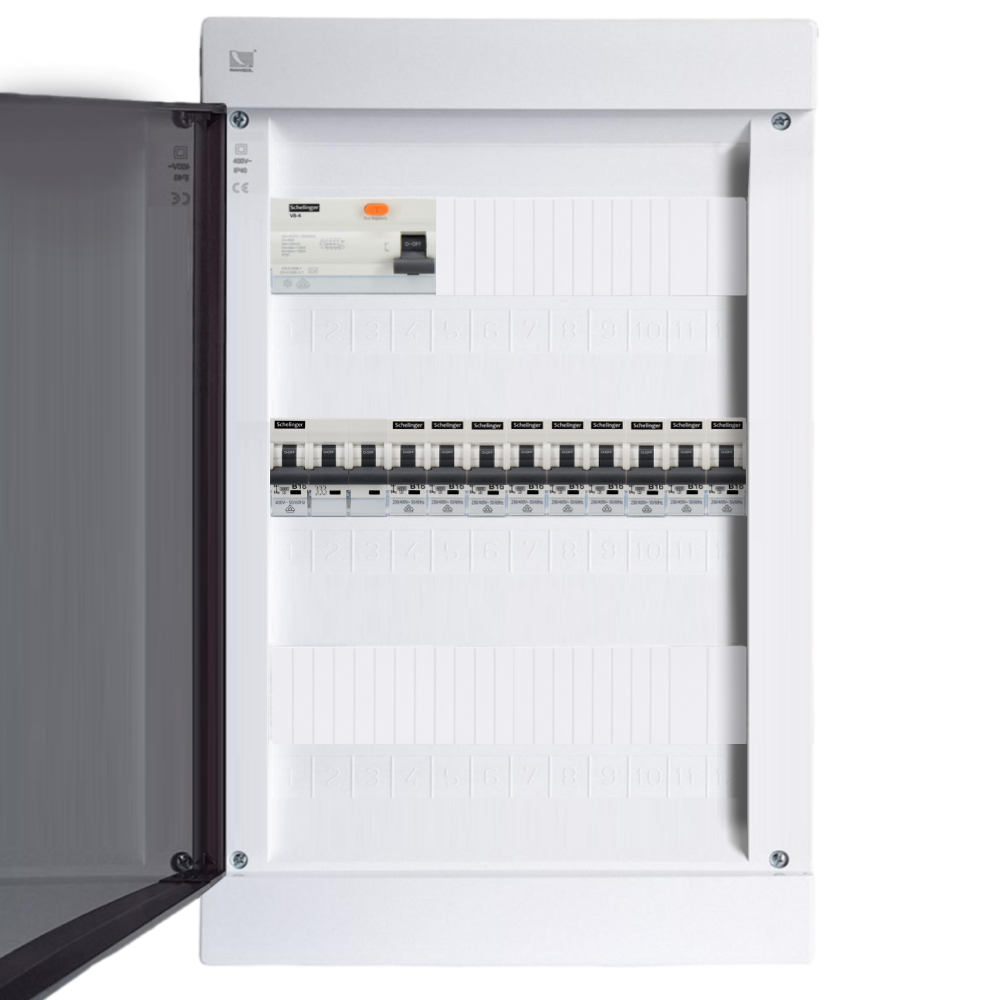 Sicherungskasten, 2,3,4,5 Reihig, Aufputz, Unterputz, Hohlwand, verdrahtet, VDE 1 x FI 40A/30mA + 1 x 3P LS B16 + 9 x 1P LS B16