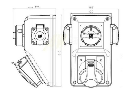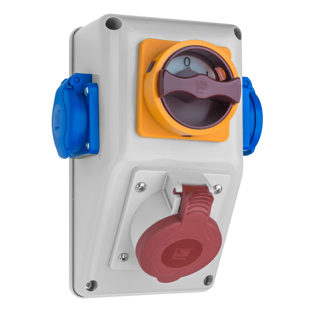 Wandverteiler mit Wendeschalter für Rechts- und Linkslauf 1xCEE/16A+2x230V/16A